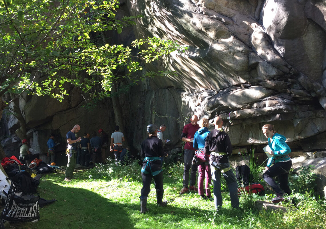 Auktoriserade instruktörer behöver gå en fortbildning vart tredje år för att behålla sin licens. Foto Johanna WerqvistInstruktörer och accessintresserade samlades i Bohuslän i för fortbildning och utbytte av tankar och erfarenheter om allemansrätt, tillgång till klättring utomhus, utbildningar och säkerhet. Nils Ragnar Gustavsson från Bohusläns Klätterklubb accesskommitté informerade om deras Bergsfadder system. Foto Andreas Enqvist.
