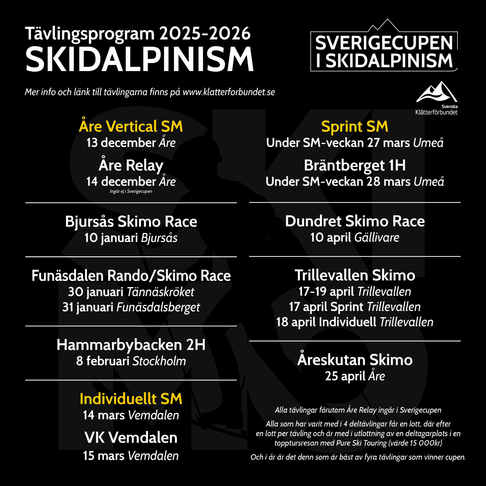 Ju fler tävlingar, desto roligare för alla! Om ni vill arrangera en deltävling i Sverigecupen är ni varmt välkomna att kontakta Svenska Klätterförbundet via Daniel Knabäck, ordförande Skidalpina Kommittén.